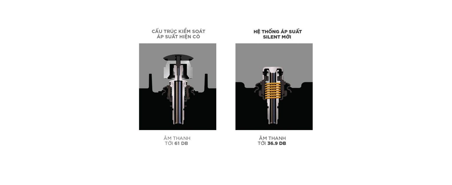 – Hệ thống thoát hơi nước áp suất êm ái