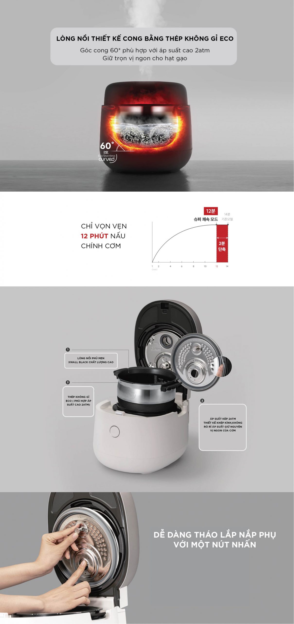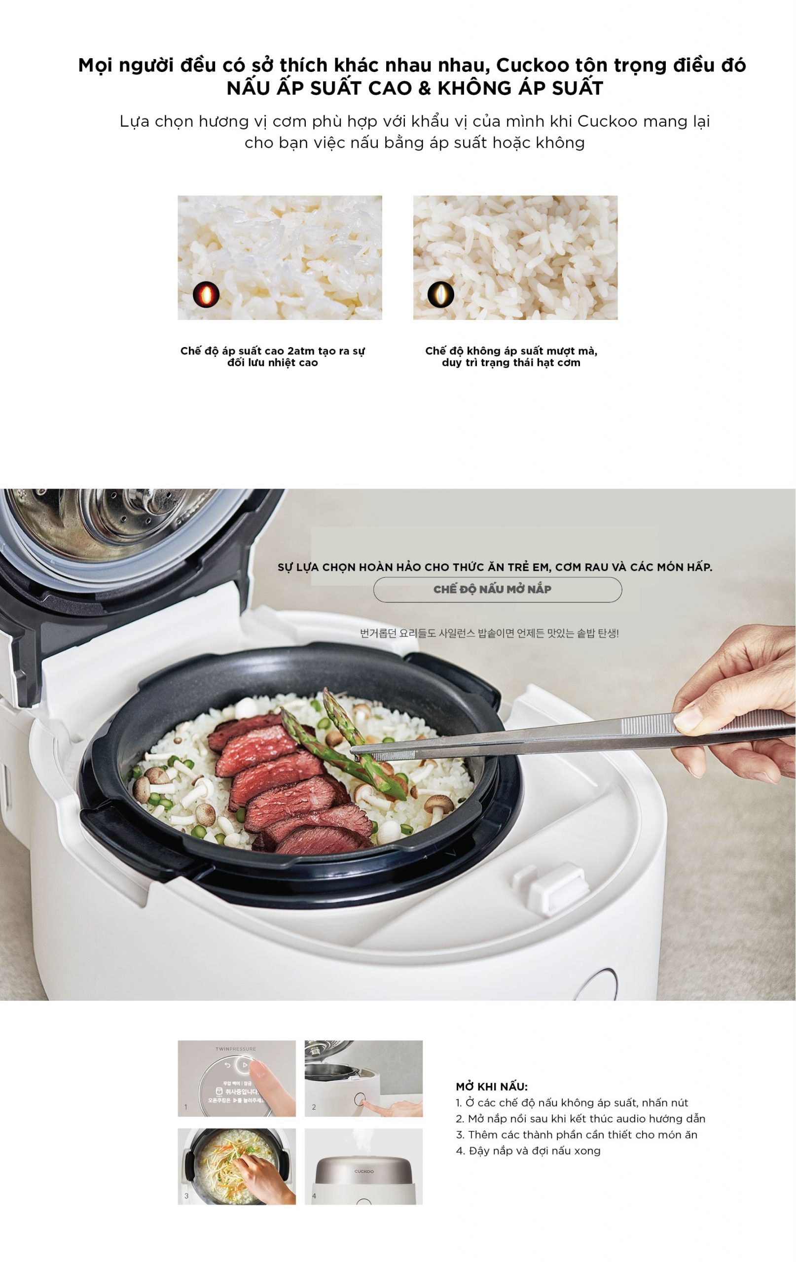 – Chế độ nấu ăn mở nắp tiện lợi